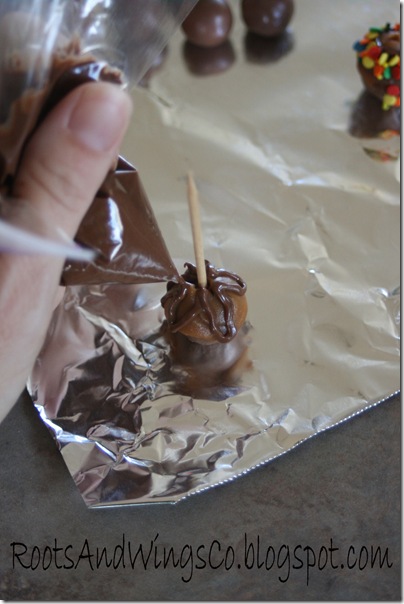 Next a fun drizzle of chocolate.